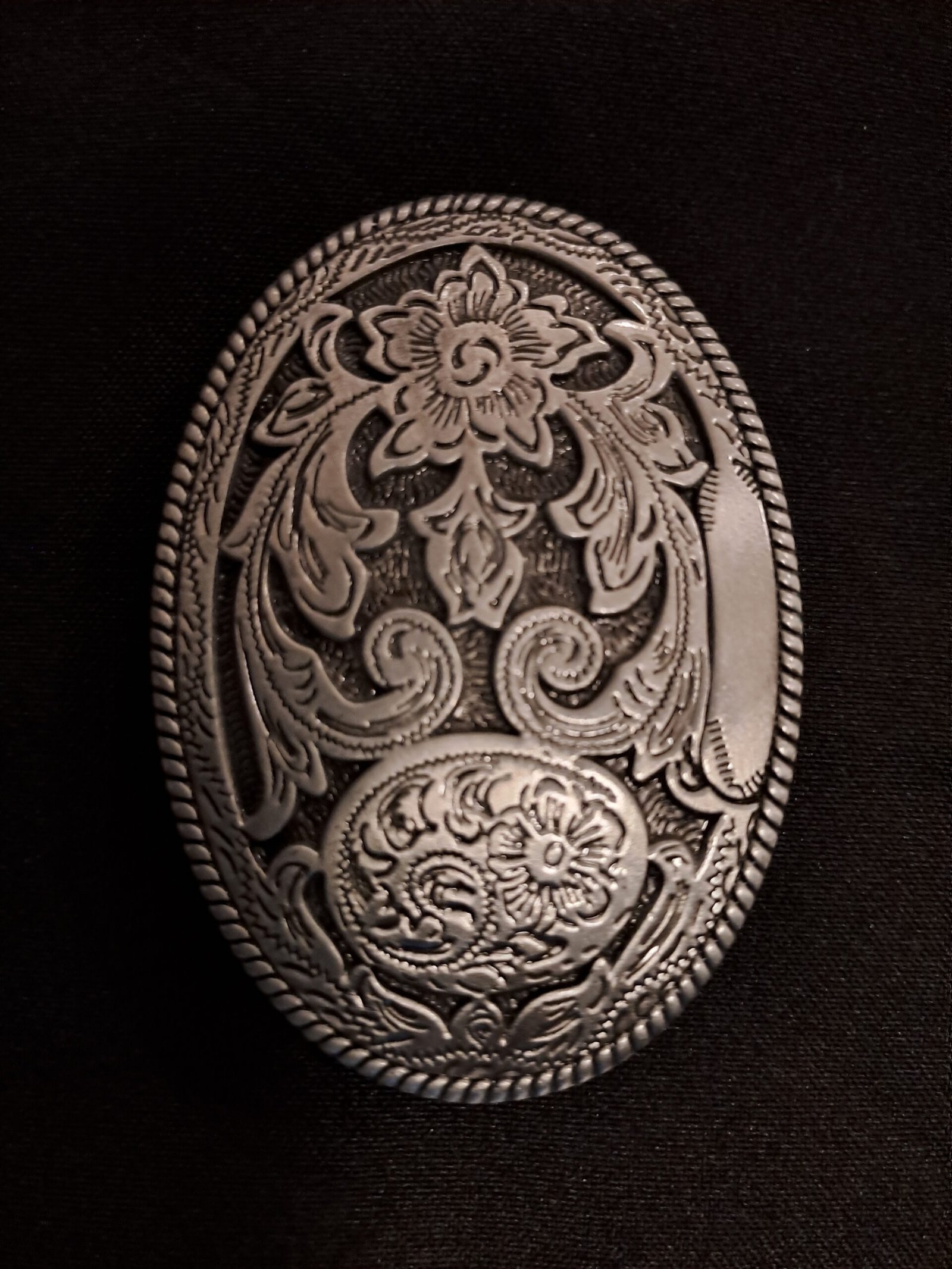 Díszített fém övcsat.